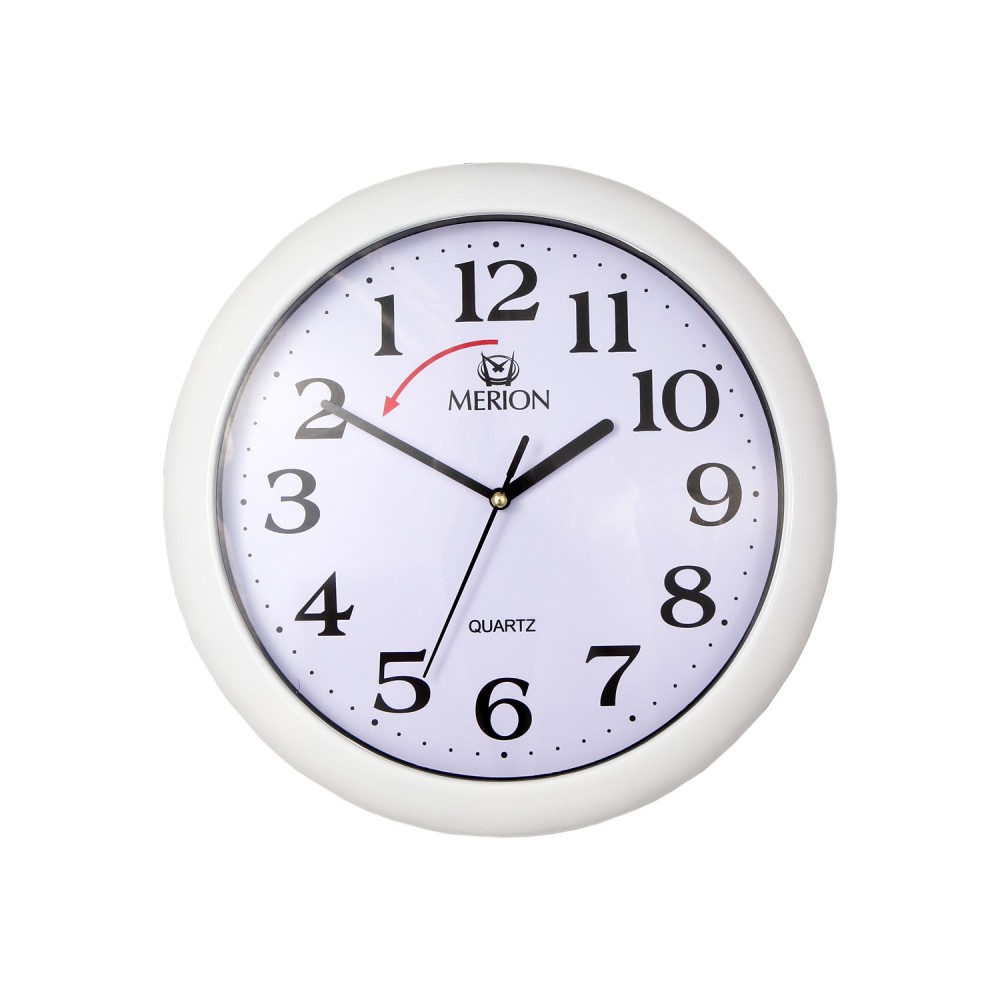 Merion Visszafelé Járó Falióra Fehér Tokkal és Quartz Szerkezettel