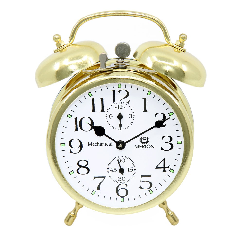 Merion Arany színű mechanikus fém ébresztőóra dupla csengővel és komplex számlappal