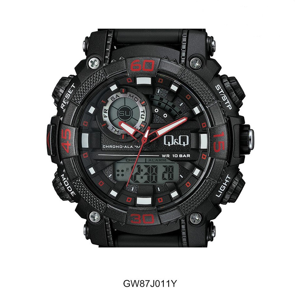 Q&Q férfi műanyag szíjas digitális karóra, fekete színű tok és csat, fekete színű számlap, GW87J011Y