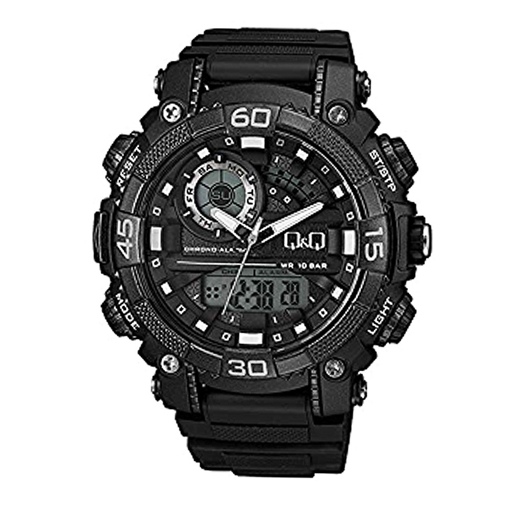 Q&Q férfi digitális karóra, quartz, fekete színű tok, fekete színű műanyag szíj, GW87J010Y
