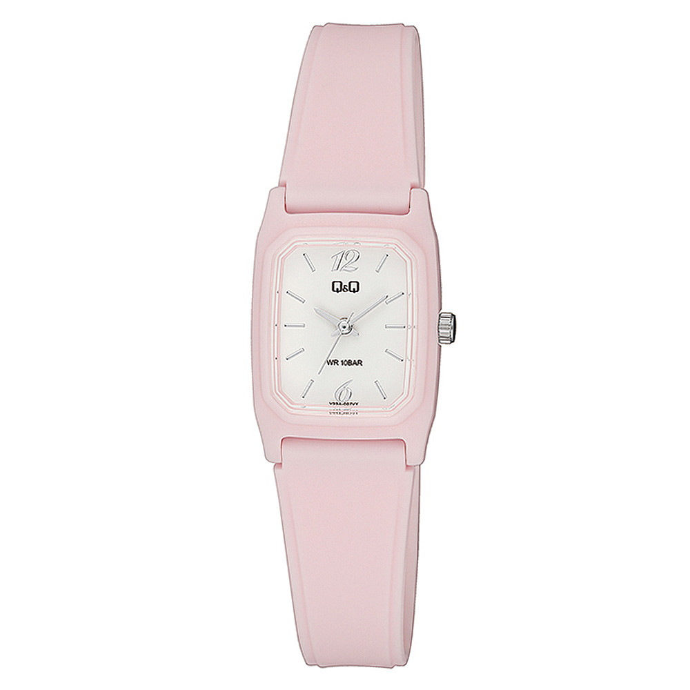 Q&Q női karóra, quartz, rózsaszínű műanyag tok, rózsaszínű műanyag szíj, fehér színű számlap, V33A-007VY