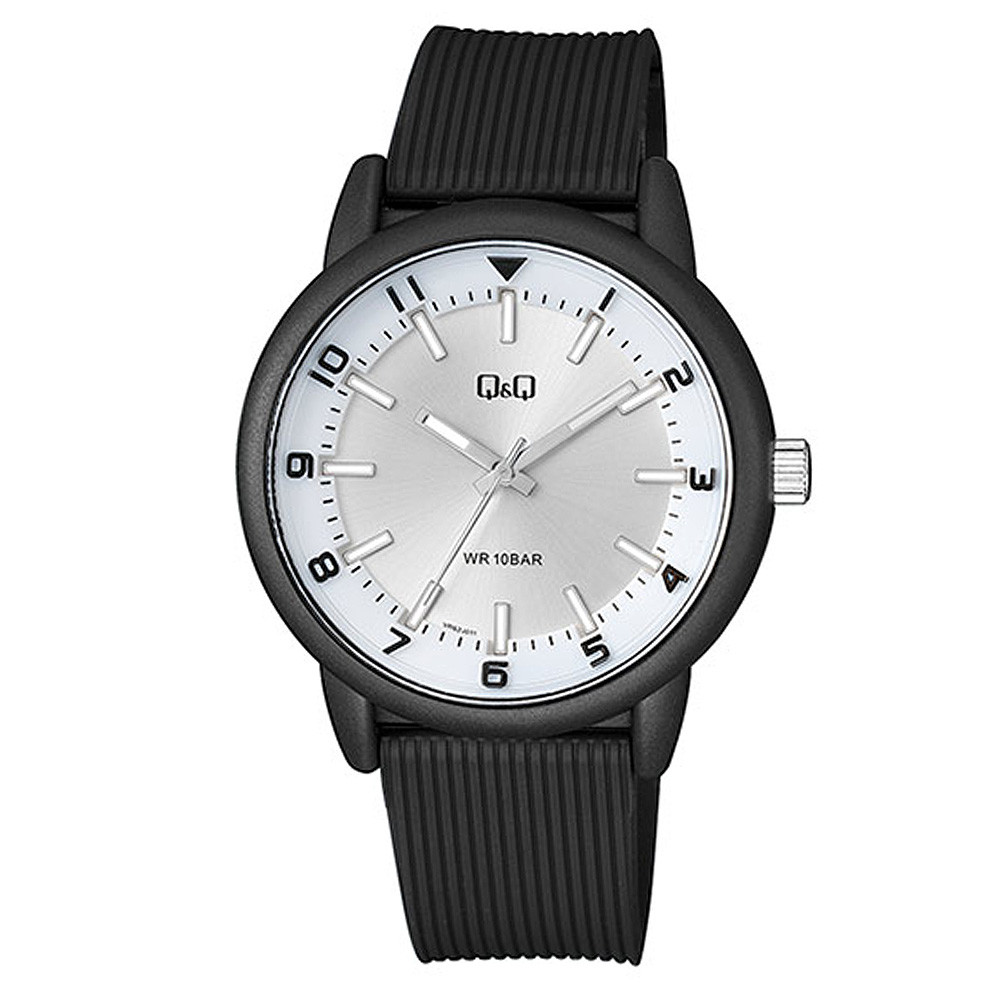 Q&Q Sportos Férfi Karóra – Fekete Műanyag Tokkal, Ezüst Számlappal és 10 Bar Vízállósággal