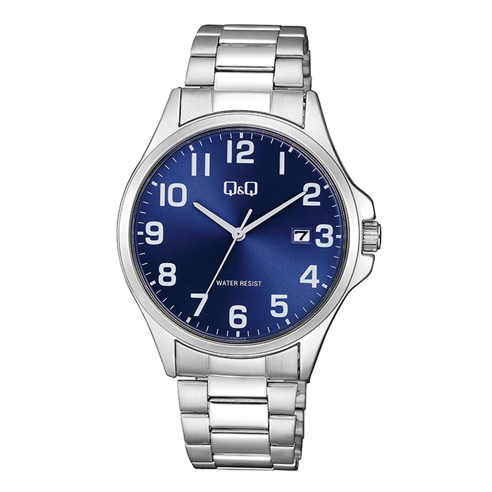 Q&Q férfi karóra, quartz, ezüst színű fém tok, ezüst színű acél karcsat, kék színű számlap, A480J215Y