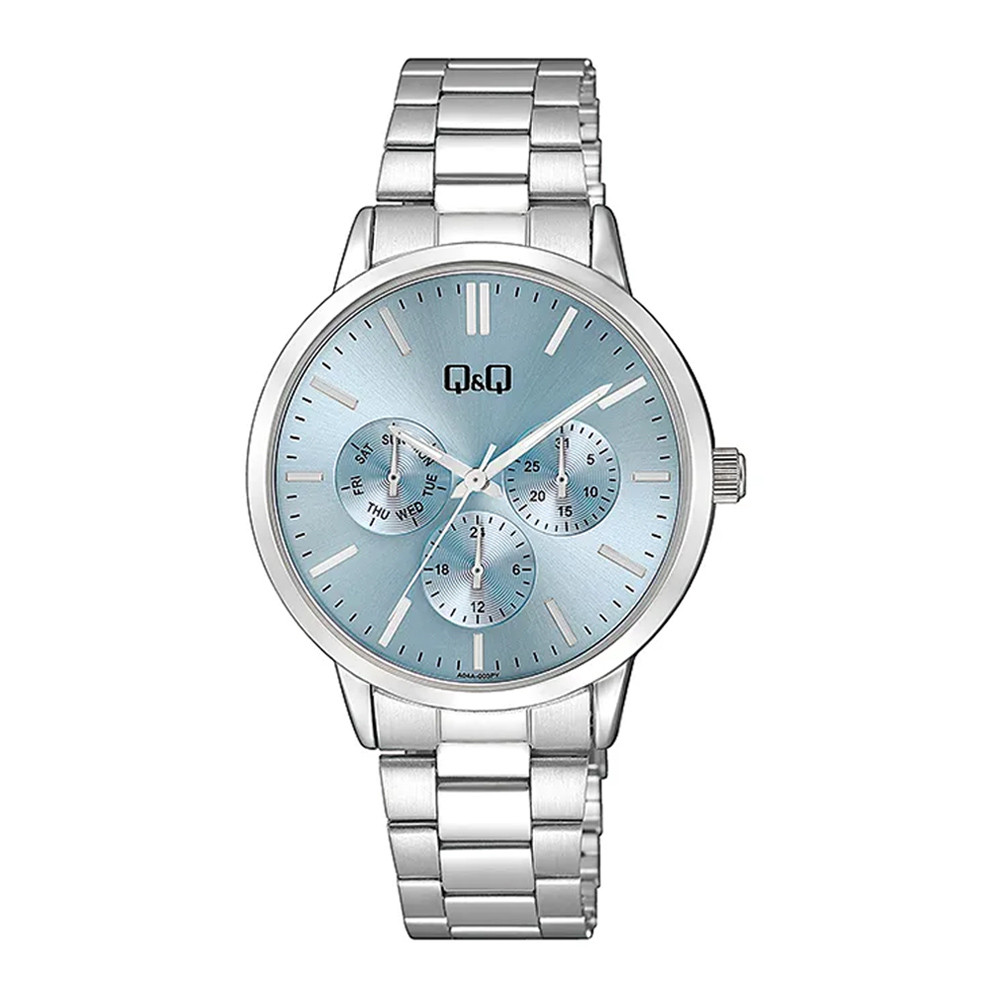 Q&Q Multifunkciós Női Karóra – Ezüst Fémtokkal, Nemesacél Csattal és Jégkék Számlappal