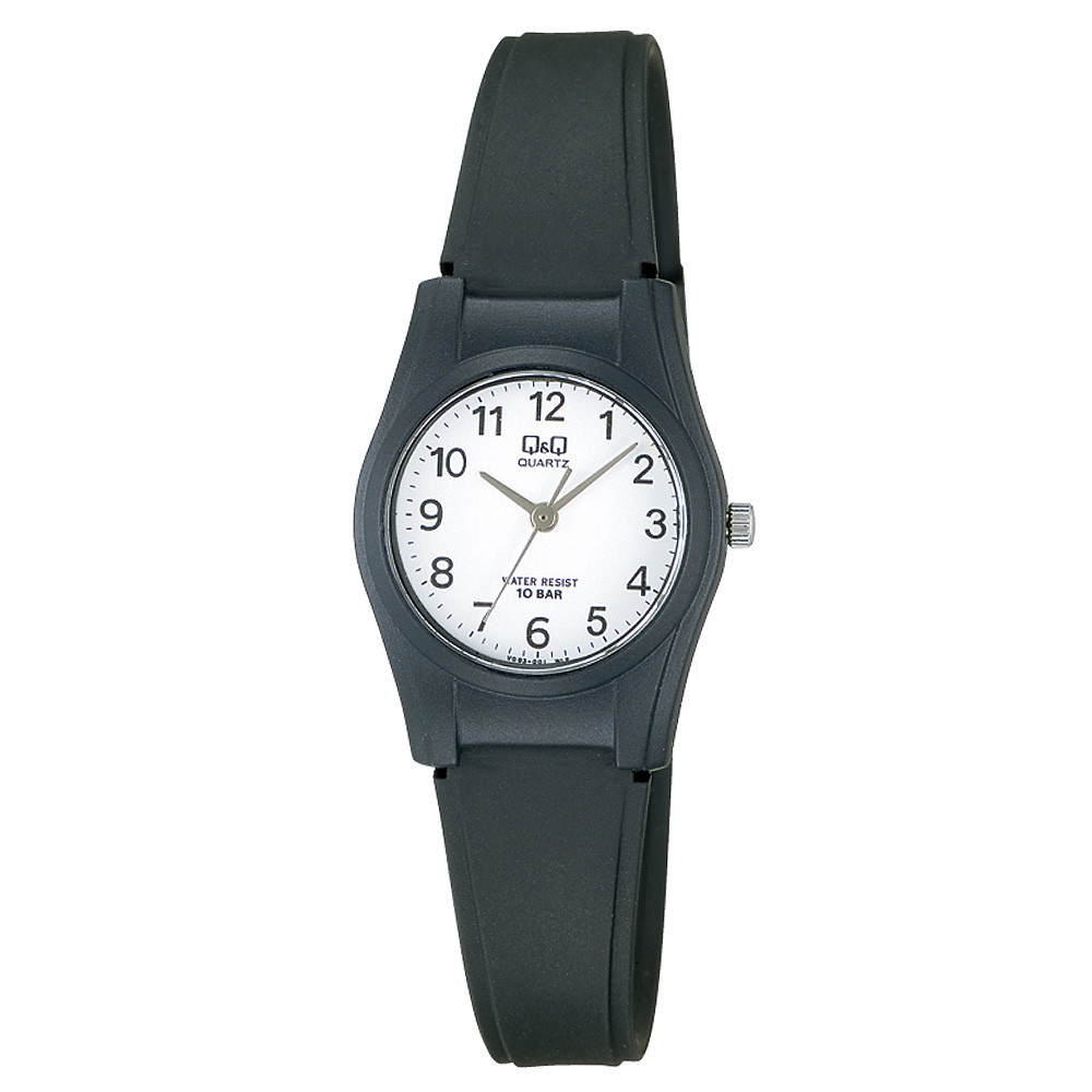 Q&Q Klasszikus Női Karóra – Fekete Műanyag Tokkal, Jól Olvasható Fehér Számlappal és 10 Bar Vízállósággal