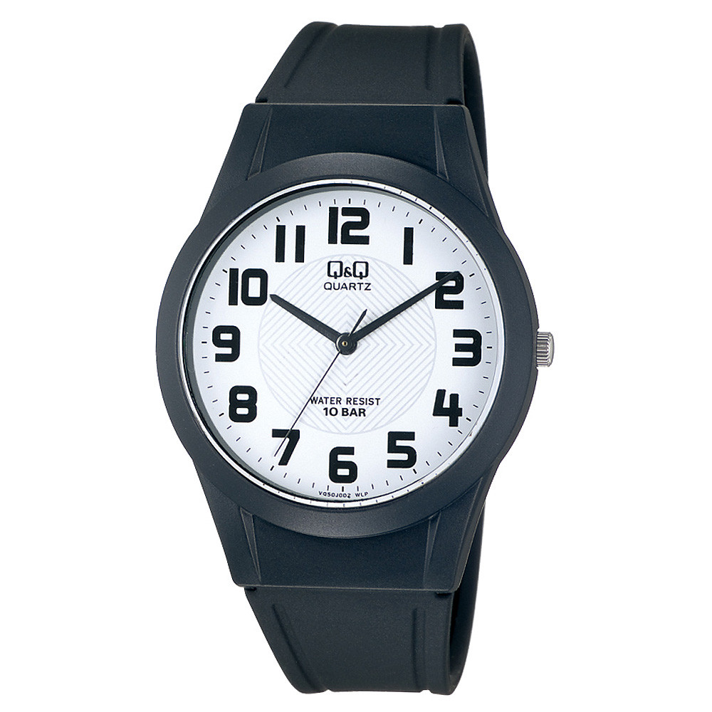 Q&Q Karakteres Férfi Karóra – Fekete Műanyag Tokkal, Texturált Fehér Számlappal és 10 Bar Vízállósággal