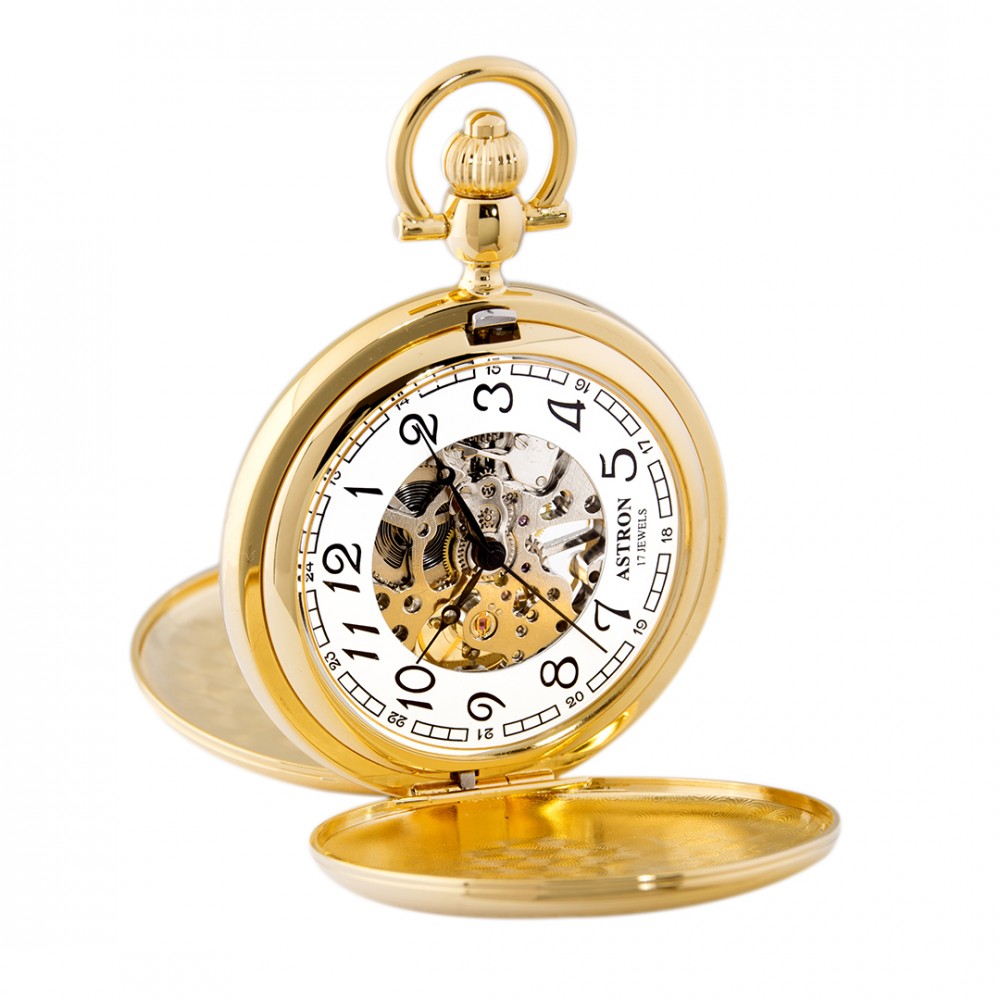 Az Astron férfi zsebóra, mechanikus, arany színű kivitelben időtlen darab, amely a hagyományos órakultúrát ötvözi a mai, igényes megjelenéssel.
