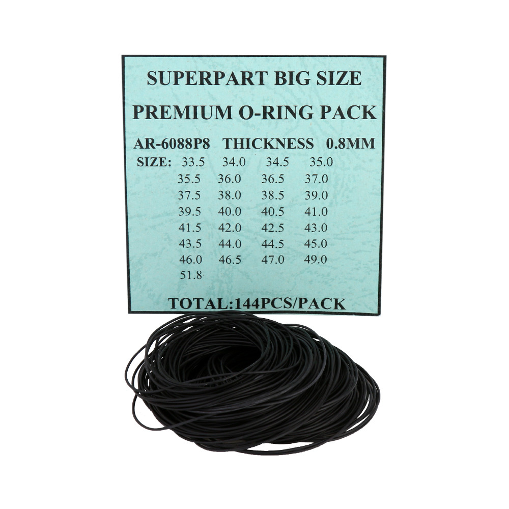 Hátlap tömítés ^O^gyűrű szett, 16 méret, 0,8 mm x 33,5 mm-től - 46mm-ig, 144 db / szett