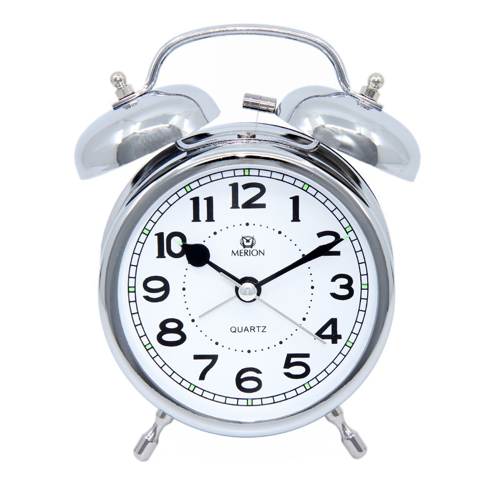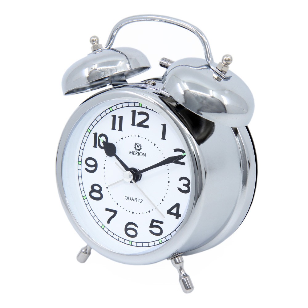 Merion Ezüst fémtokos ébresztőóra dupla haranggal és Quartz szerkezettel