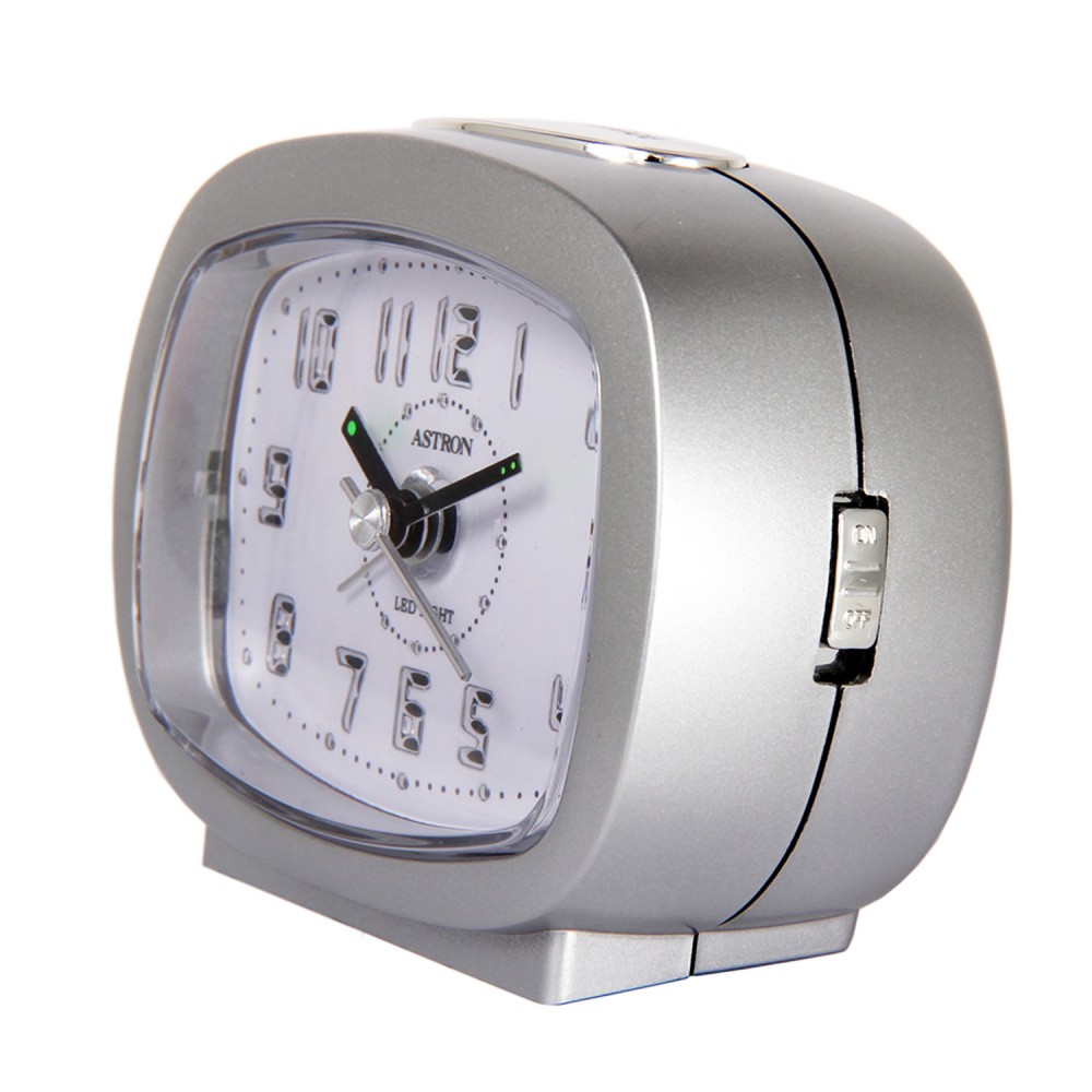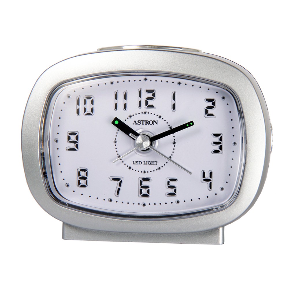 Astron Ezüst színű ébresztőóra LED-es hatású számlappal és modern Quartz szerkezettel