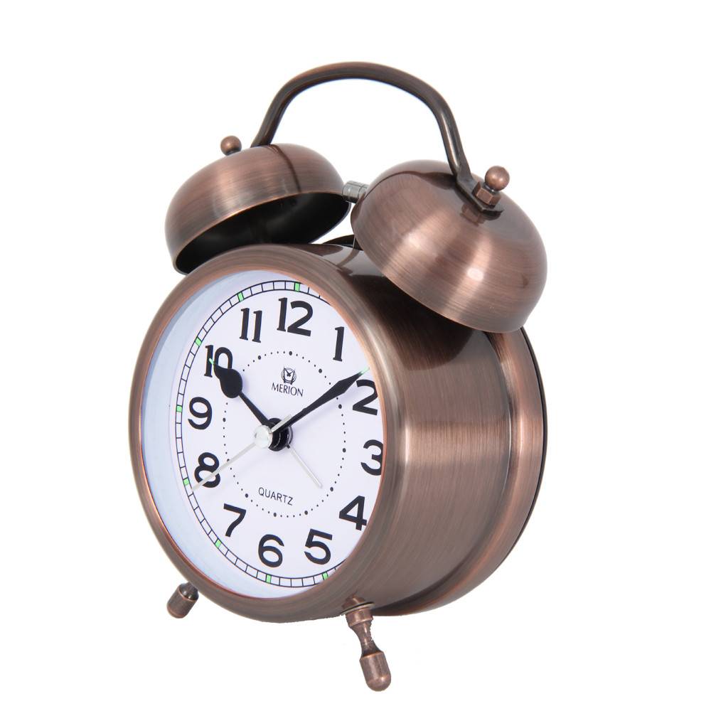 Merion Barna fémtokos ébresztőóra dupla haranggal és lumineszkáló mutatókkal