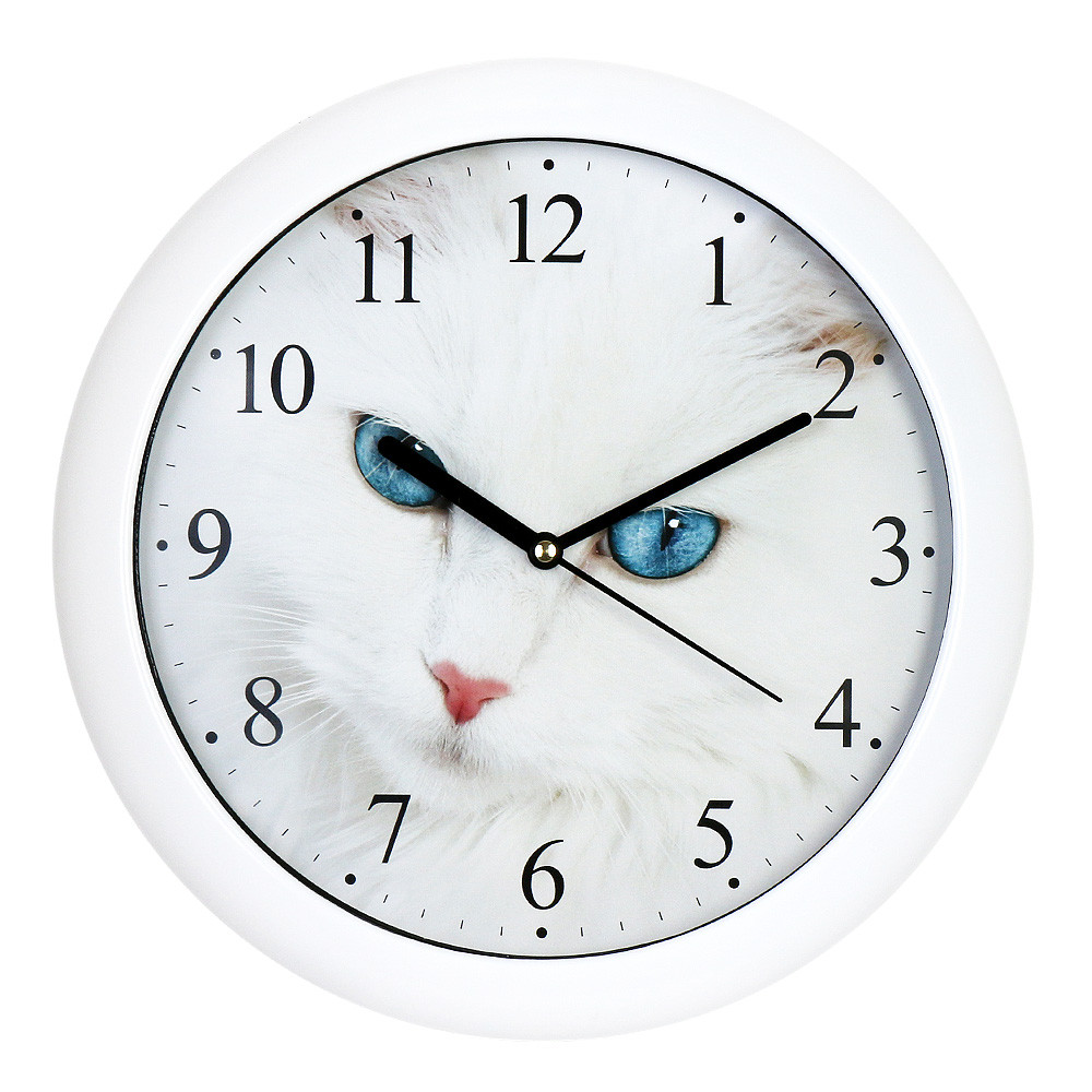 Válaszd az igéző szépséget és a csendes precizitást ezzel a dekoratív faliórával! Ezt a modellt a természet eleganciája ihlette: a számlapot kitöltő fehér macska-portré és a cica átható kék tekintete olyan mély vizuális hatást kelt, amely azonnal a helyiség legvonzóbb kiegészítőjévé teszi az órát.