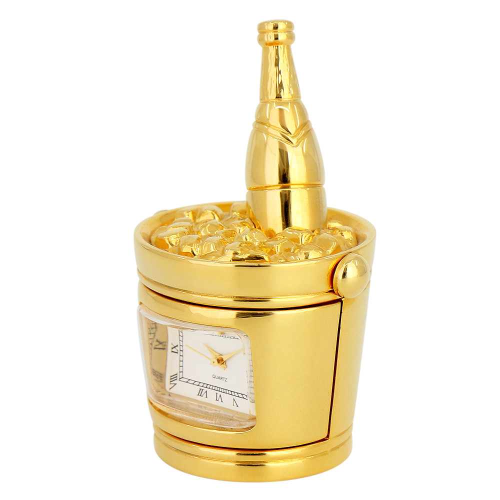 Ez a fém asztali óra klasszikus formavilágot ötvöz a modern, megbízható kvarc technológiával. Arany színű tokja elegáns keretet ad a fehér számlapnak, amelyen jól olvasható, római számok segítik a gyors időleolvasást. A pezsgő árnyalatú felület finoman tükrözi a fényt, így az óra diszkrét, mégis látványos dísze lehet a helyiségnek.