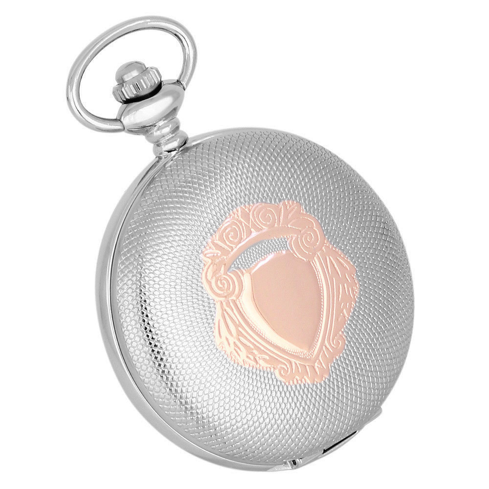 A pajzs mintás díszítés különleges textúrát kölcsönöz a tok felületének, ezáltal a zsebóra nemcsak praktikus időmérő eszköz, hanem látványos kiegészítő is. A kétféle fémes árnyalat kiemeli egymást, így a zsebóra diszkréten, mégis határozottan emeli ki viselője stílusát.