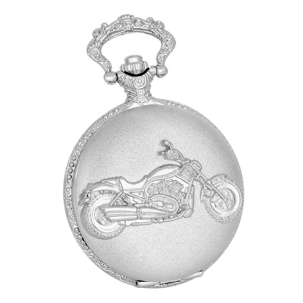 Az ezüst színű fémtok harmonikusan egészíti ki a fehér számlapot és a motoros motívumot. A fémtok kialakítása a hagyományos zsebórák világát idézi, így remekül illik mellényzsebhez, zakóhoz vagy akár farmerhez is, ha egy kis retro hangulatot szeretnél csempészni a megjelenésedbe.