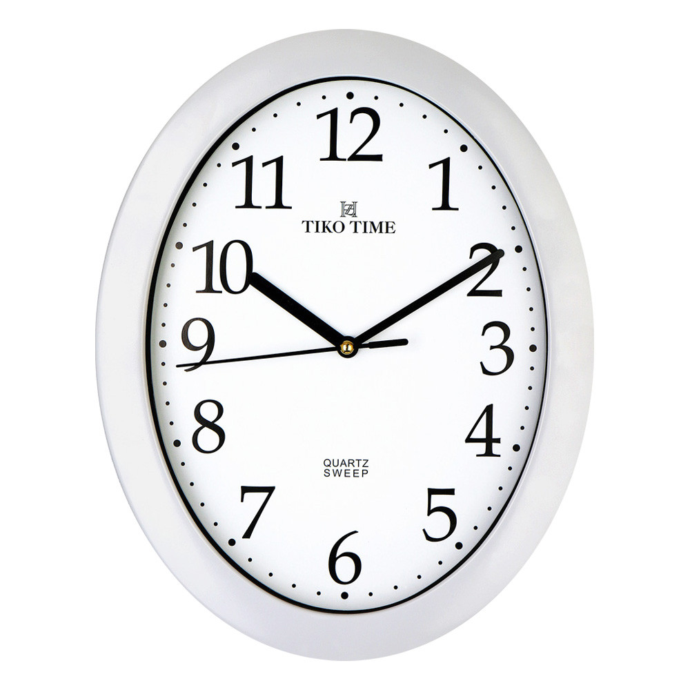- Modern ovális design: Tiszta fehér keret és számlap.