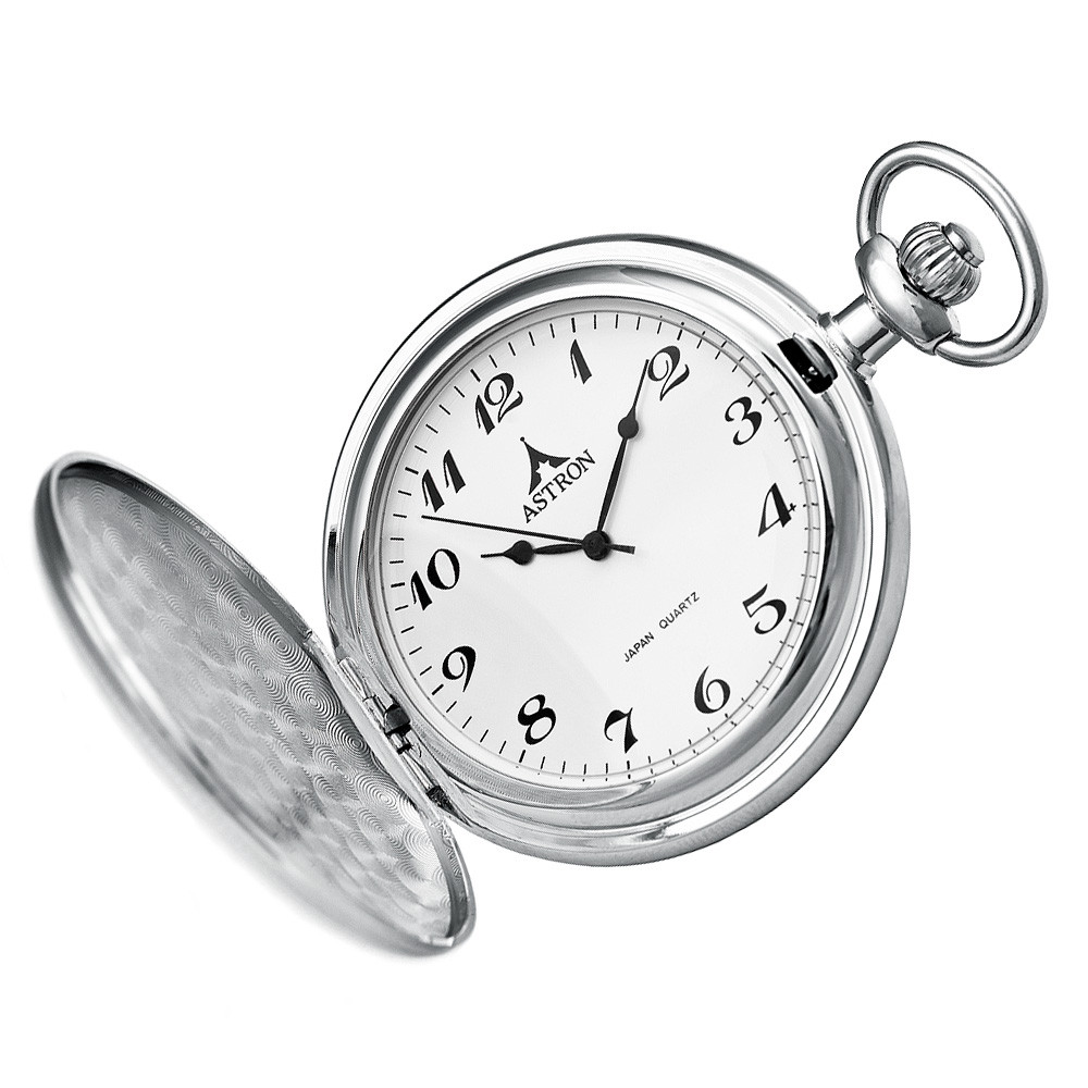 Az Astron férfi zsebóra a hagyományos zsebórák hangulatát ötvözi a modern quartz technológiával. Ezüst színű tokja vonatos motívummal díszített, ami karakteres, nosztalgikus megjelenést ad, így a zsebóra nemcsak időmérő eszköz, hanem látványos kiegészítő is.