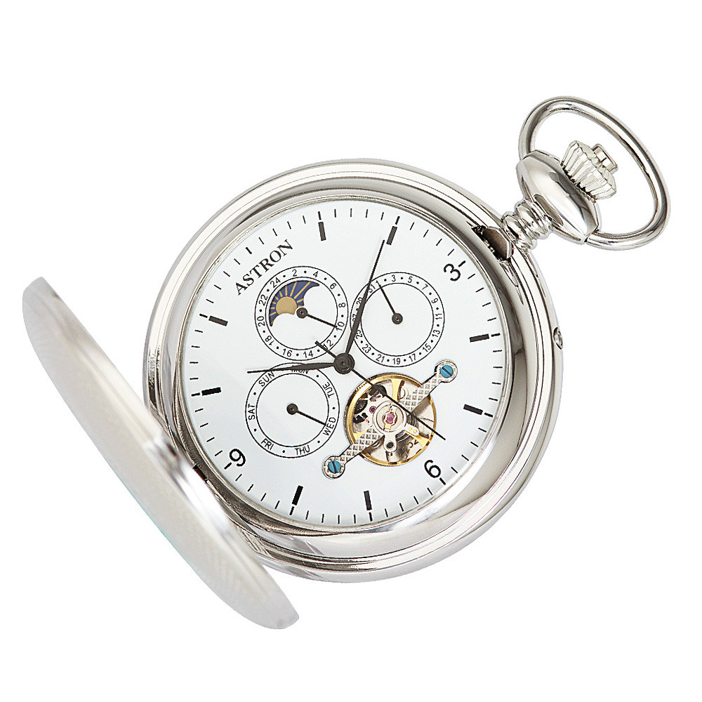 Astron férfi zsebóra, mechanikus automata szerkezet, ezüst színű fémtok, fehér számlap